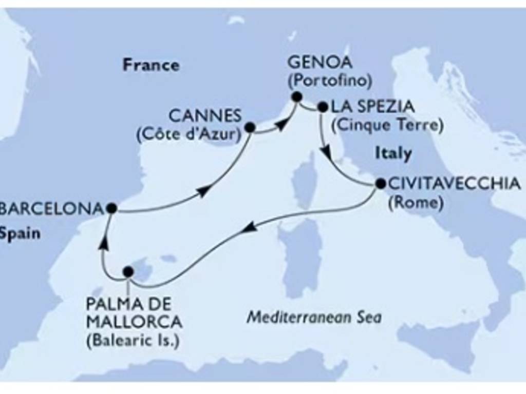 Sve cijene su informativnog tipa, izražene za najpovoljnije dvokrevetne kabine bella kategorije, cijene podložne promjenama prema cjenicima MSC Cruises. Za djecu do 18 godina vrijede paušalne cijene na trećem i četvrtom ležaju.