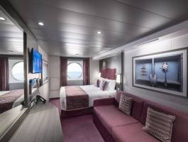 Bračni krevet se na zahtjev može pretvoriti u dva zasebna ležaja. Sve kabine sadrže: klimatizacija, garderobni ormar, kupaonica s kadom ili tušem, interaktivni TV, telefon, bežični internetski pristup (uz naknadu), mini bar, sef.Određen broj kabina mogu biti trokrevetne ili četverokrevetne.